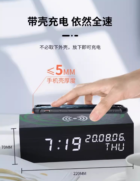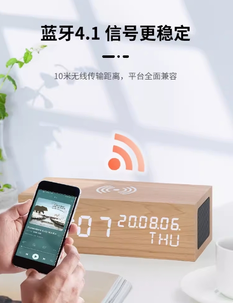 • 电子时钟蓝牙音响小闹钟无线充电快充