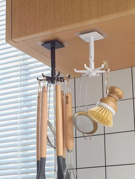 收纳架置物架旋转挂钩壁挂式厨具架免打孔厨房挂架